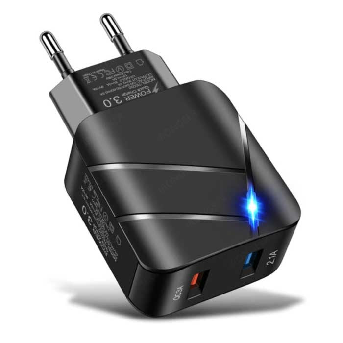 Laddaren har en Quick Charge 3.0 USB-port och en total effekt på 28 W. Dessutom finns det en 2.1A USB-port För en andra, ultrasnabb laddningsport. På så sätt kan du ladda alla dina enheter samtidigt med höga hastigheter. När du laddar två enheter samtidigt delas 28W-effekten mellan båda portarna.