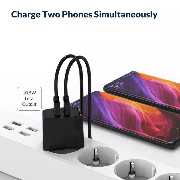 Dubbel 2x Port USB Väggladdare - 2.1A Väggadapter AC Hemladdare Svart