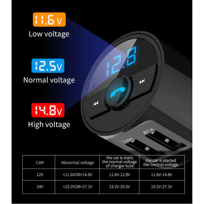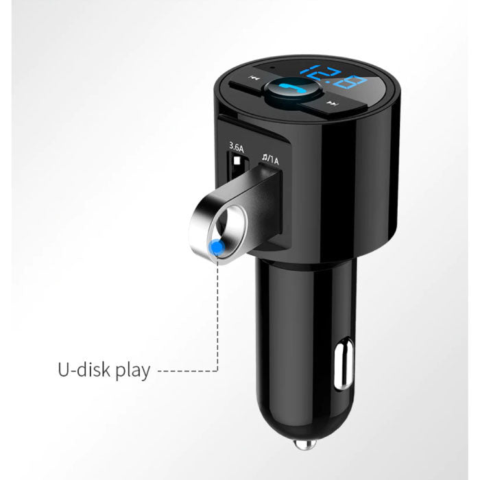 3,6A Dubbel USB Billaddare med Bluetooth-sändare - Handsfree Laddare FM-radiokit med SD-kortplats Svart