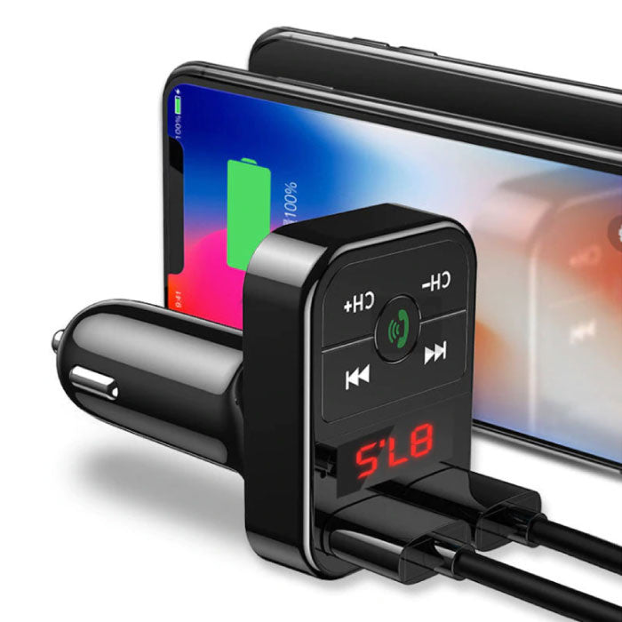 Dubbel USB Bil-laddare Bluetooth Handsfree Laddare FM-radiokit Rosa