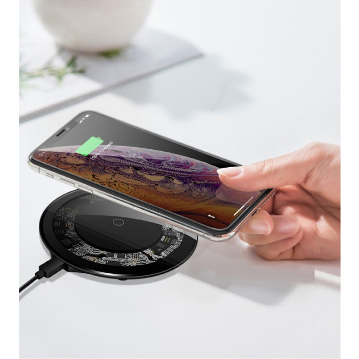 Den trådlösa laddaren IONCT 15W är en kraftfull snabbladdare som är kompatibel med alla Qi-kompatibla enheter. Du behöver inte ansluta någon kabel; placera bara din telefon på den trådlösa laddningsplattan så börjar den laddas direkt!