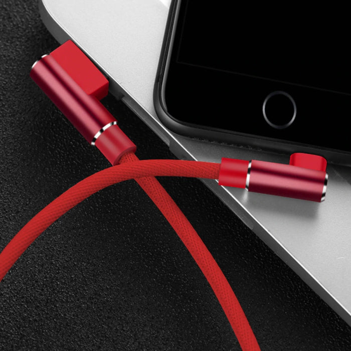 iPhone Lightning laddningskabel 90° - 1 meter - Flätad nylon laddare datakabel Android röd