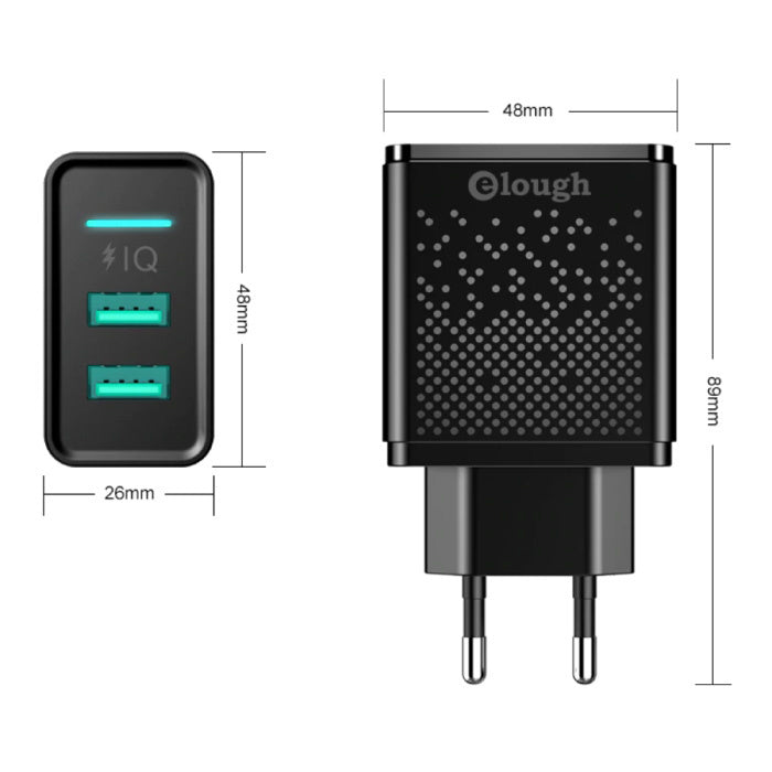 IQ Väggladdare - 24W AC Hemladdare Väggadapter Svart