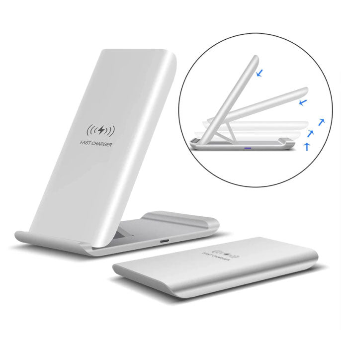 Qi Trådlös Laddare Skrivbordsställ 15W - Typ C Universell Telefonhållare Trådlös Laddningsplatta Vit