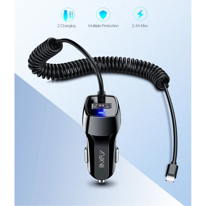 Lightning USB billaddare för iPhone med 2,4A snabbladdning - svart