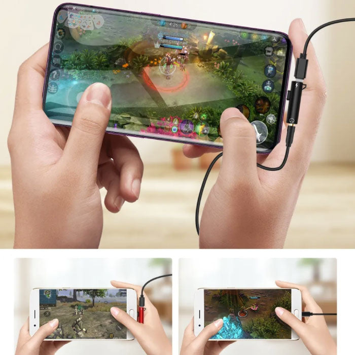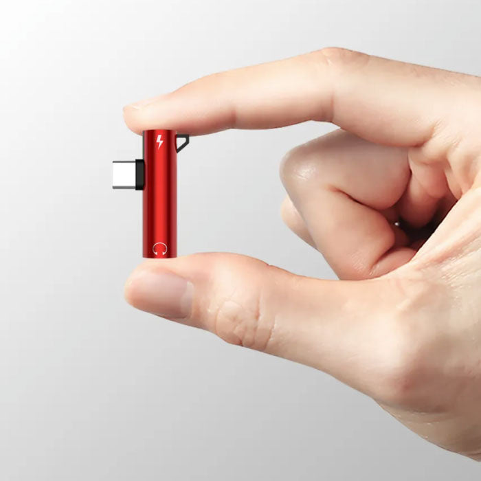 USB-C Laddare & AUX-splitter - Hörlursljudsplitteradapter Röd