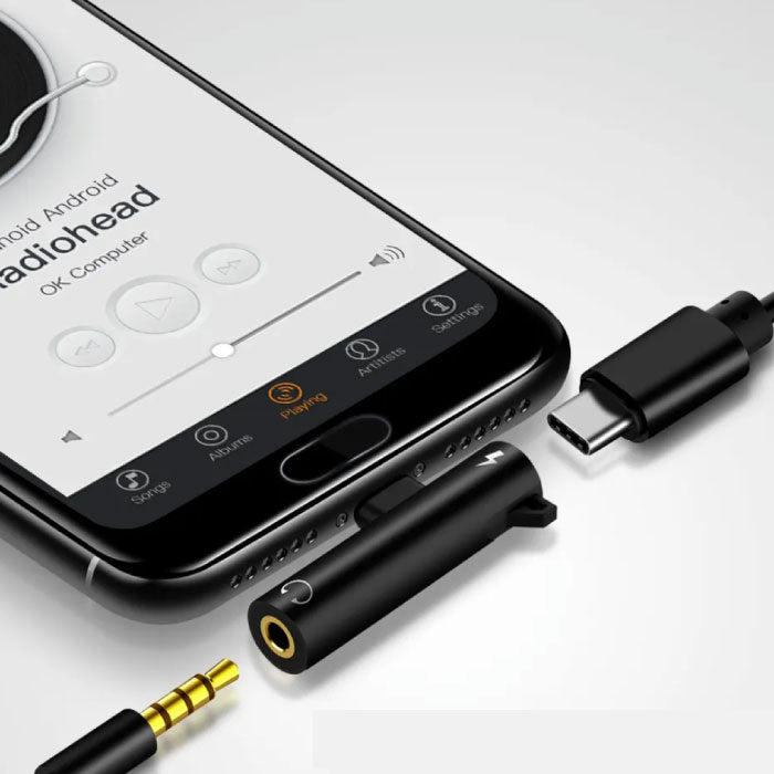 USB-C Laddare & AUX-splitter - Hörlursljudsplitteradapter Silver